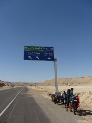 さて、そうこうしているうちに、いよいよ、ルクソールとアスワンとの分かれ道に到着した。実は、オイラ、エジプトをチャリで走るのはルクソールまでと計画していたんですよ。アスワンまで行ってアブシンベル神殿は見たいケド、それはルクソールから電車かバスに乗っていけばいいやと。だからとりあえず、走るのはルクソールまでって。