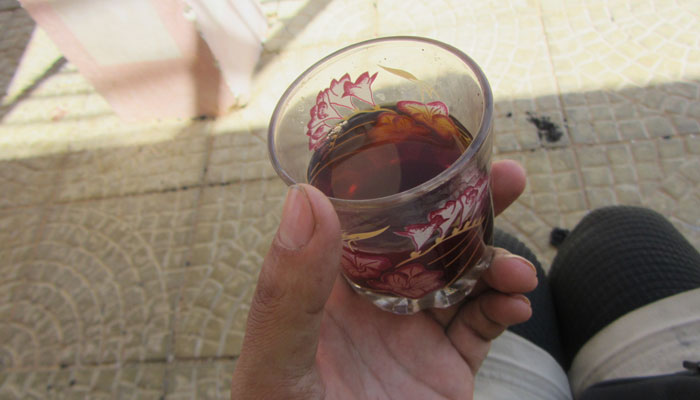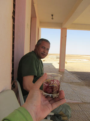 しかし、検問所の人たちは皆めっちゃ親切。基本的に暇だからなんだろうけど、オイラたちのような訪問者が来たことを喜んで歓迎してくれる。今日二番目の検問所でも、一人で番をしているらしきおじさんが、オイラたちにチャイをおごってくれた。