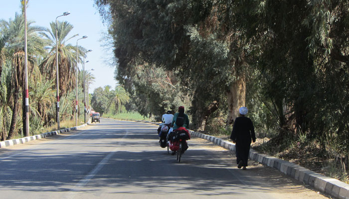 ナイル川沿いは、これまで訪れてきたオアシスがずっと続く感じになった。緑が生い茂っていて、無味乾燥してひたすら何もなく、走っていて誰とも出会えなかった砂漠道とは全然雰囲気が違う。水があるため、それを生活の糧としている人たちが多く住んでおり、とにかく、人、人、人。人に出会いまくれるのだ。