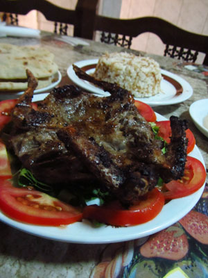 別れる前、森くんから「ヨシさん、鳩は食べました?食べてないなら、ぜひ食べてみてください」と言われていたオイラ。どうやらエジプトは鳩肉が名物らしい。ということで、本日、鳩肉を食いに近くのレストランへ。