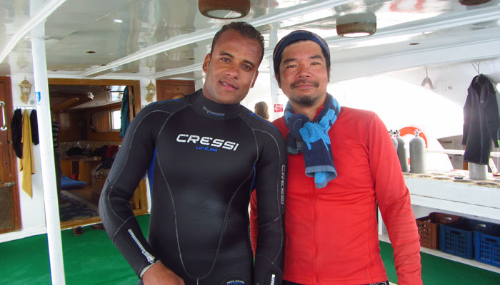 さてさて、紅海でダイビングをするのは、水が綺麗だからってのがあるんですが、実は、ぜひとも対面してみたい魚がいまして。それはナポレオンフィッシュ。世界の海でぜひとも会いたい魚の一匹なんですよ。そんなナポレオンフィッシュが見れるポイントに連れて行ってもらうことに。