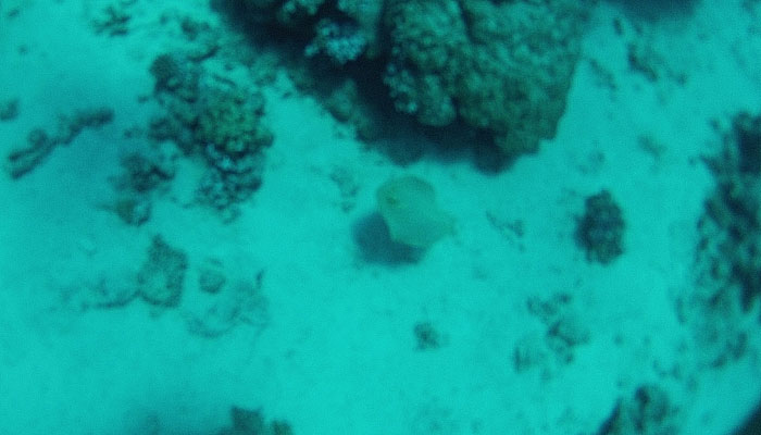 で、ポイントに到着し、早速ダイブ。今回水中撮影は防水のGoProを使うことにしたのだが・・・これ、水の中に入れると、ピントが合わなくなって、ボケボケになっちゃうんですな。最初は単焦点だから、水中で暗くなるから被写界深度浅くなってピントが合わなくなるのかなって思ってたんだけど、よくよく調べてみると、防水ケースの保護ガラスの屈折率の関係らしい。GoProは標準のケースでも防水だからダイビングで使えるかと思っていたのに・・・ちゃんとダイビング用のハウジングキットを買わないとダメだったようだ(GoPro3からは、標準のケースでも水中撮影でこんなことが起こらないようになったらしい)。