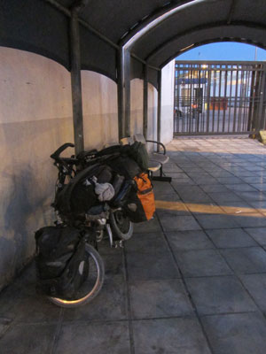 昨日は、ベンチの横にマットをひき、そのまま寝てしまった。警備員さんもいるし、下手に外に出て、ワケワカランところで野宿をするより、実は、中で寝たほうが安全だったりする。朝、そんな警備員さんに起こされ、目覚め、フェリー乗り場からチャリで出発。