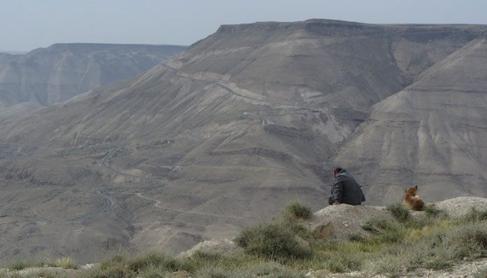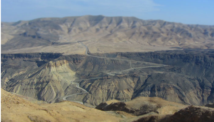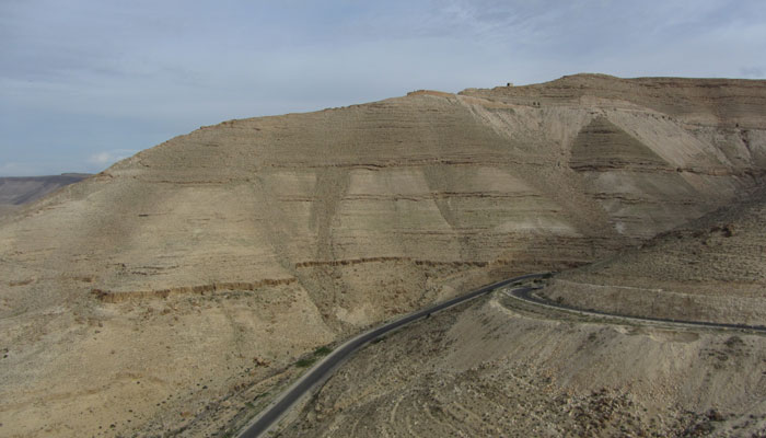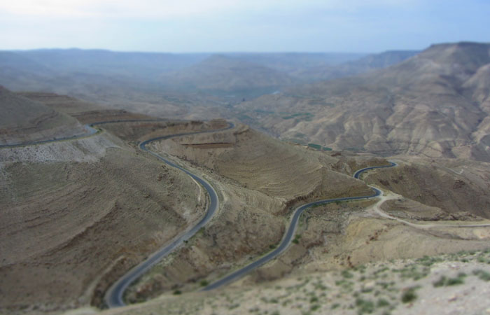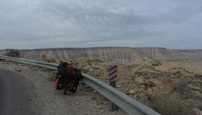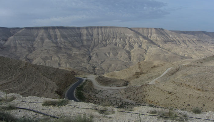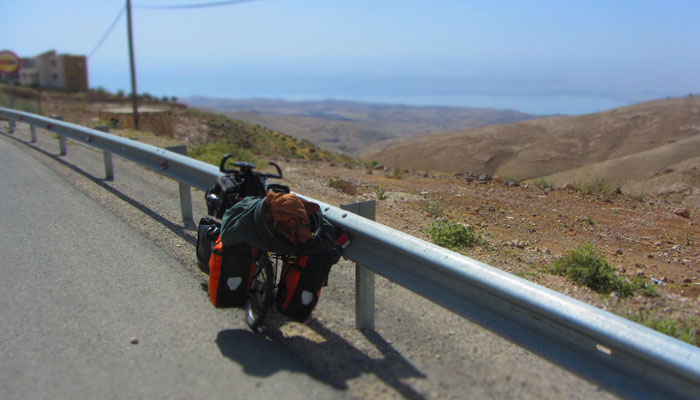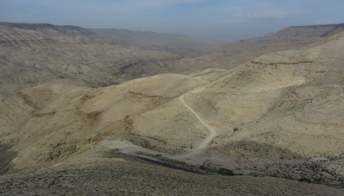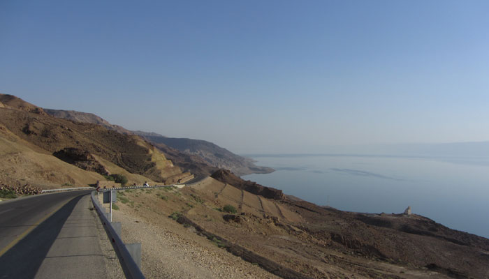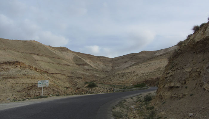 キングスハイウェイをこのまままっすぐ走れば、目指すヨルダンの首都アンマンに辿り着くことが出来る。だが、せっかくなので、死海にチャリで行ってみたい。ということで、回り道して死海に行ってみることに。