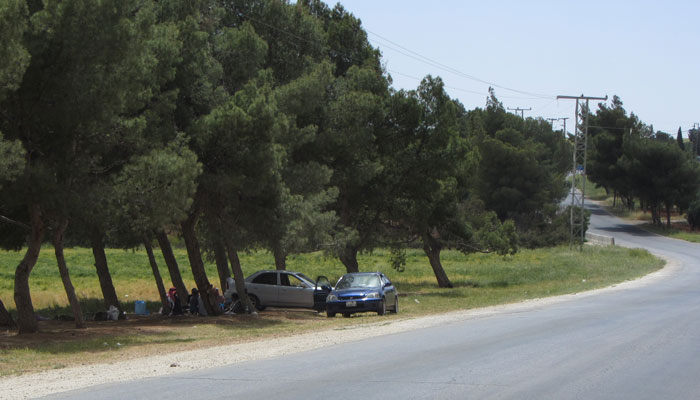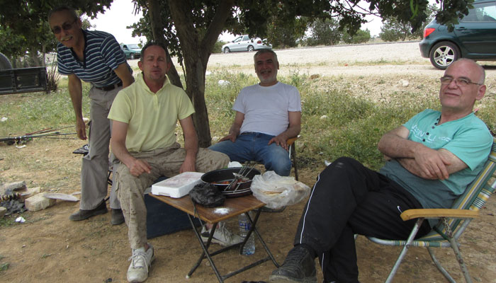 ヨルダンの人たちは、ピクニック好き。このおじさんたちに限らず、結構多くの人たちが、道端に車を停め、家族そろって、ビニールシートの上でお弁当を食べている。