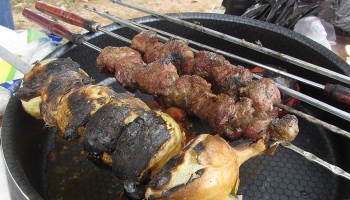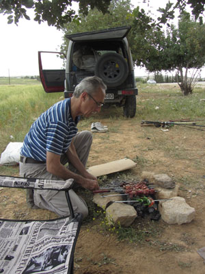 チャイでもおごってくれるのかな、と思いきや、なんと、BBQをやっているから、肉を食ってけというありがたいお誘い。それはぜひぜひ、とお言葉に甘え、美味しいお肉をいただくことに。