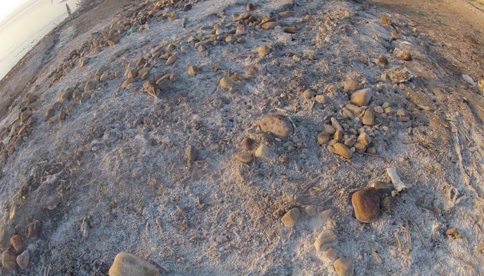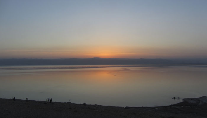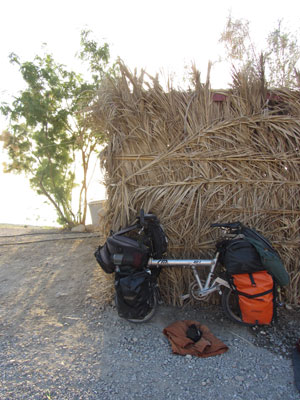 さてさて、ノロノロ降りてきたため、死海に到着する頃には夕暮れ時になってしまっていた。死海沿いは、基本的には岩ゴロゴロなのだが、ところどころに、ビーチみたいになっている場所がある。シャワーなどが整っている施設などがあったので、そこに自転車を停めさせてもらって、死海に入ることに。