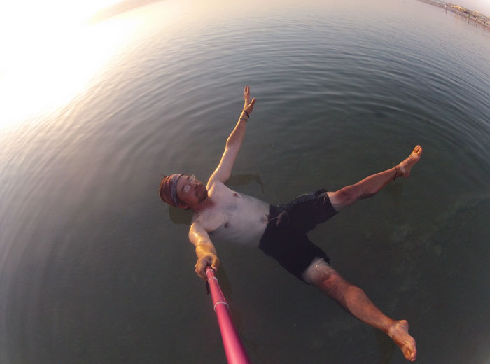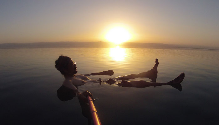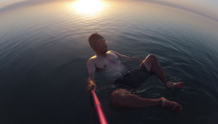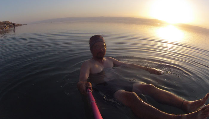まるで、宇宙遊泳をしているような不思議な浮遊感覚。セネガルのラックローズより、ここ、死海の方がより浮遊感が高い気がする。