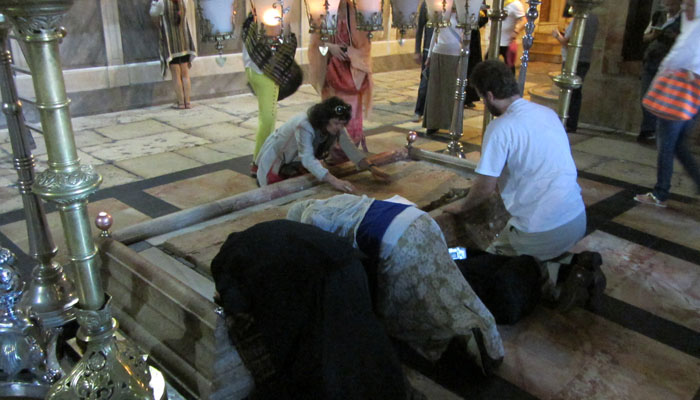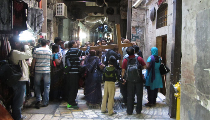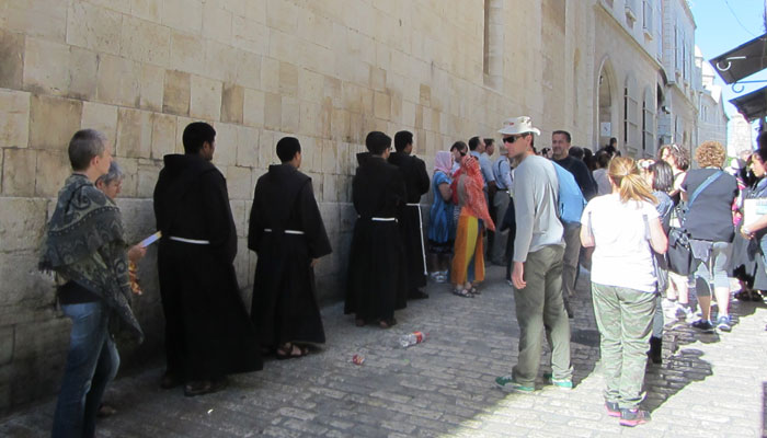 ご存知の通り、エルサレムは、ユダヤ教、キリスト教、イスラム教にとって、非常に重要な地。それぞれの宗教に関連した重要なモニュメントがいくつもある。昨日は嘆きの壁など、ユダヤ教に関連したモニュメントを見て回ったので、今日は、キリスト教メインで見て回ることに。といっても、エルサレムには、それぞれが分けられて存在しているわけじゃなく、渾然一体となっているから、いろいろ見ながらも、キリスト教の関連ものに注目しながら歩いてみたっていう、自分の意識的なものではあるんですけど。