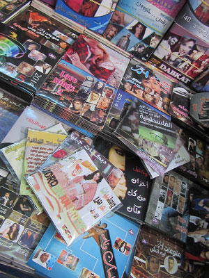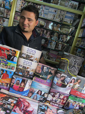 さてさて、世界各地で音楽収集するってのも、オイラの旅の重要なテーマ。エジプトから中東地域に入ってしばらく経ち、街で流れているいわゆるアラブ音楽がだいぶ耳に残ってきて、思い出と一緒にパッキングされてきたので、そろそろその思い出を引き出す道具としての音源CDをゲットしておこうと、CD屋さんへ。