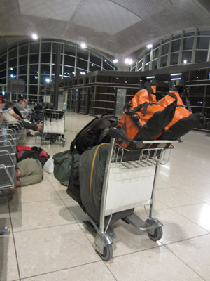 しかし、彼らのおかげで助かった。タクシーはなぜか空港手前1kmのところまでしか行ってくれず(施設入場料をケチったからだと思われる)、そこから自分たちで荷物を運んでいかねばならなくなったのだ。一人では持ちきれないフル荷物。二人がいなかったら、1kmも移動できなかったよ・・・