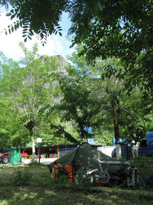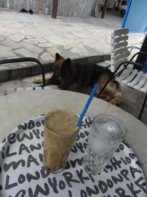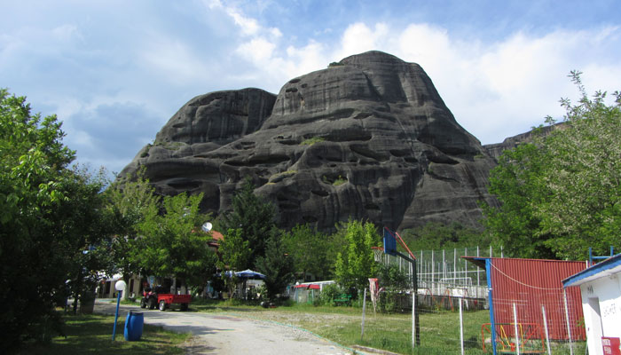 さて、到着したメテオラ。街から見ているだけでも、ゾクゾクと興奮してくる素敵な奇岩に囲まれている。ちょっと奥に入って、まさに奇岩の中にあるキャンプ場にテント泊させてもらうことにした。到着早々、ウェルカムアイスコーヒーが出てきて、嬉しい。
