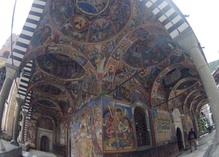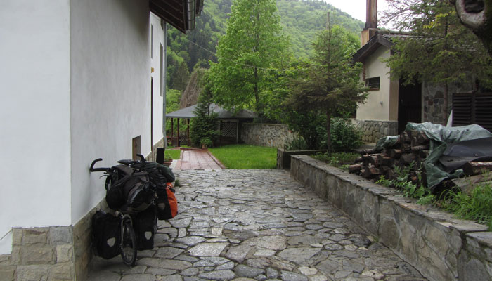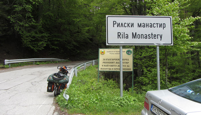昨日は雨でどうなることかと思ったのだが、今日は晴れてくれた。ということで、チャリでリラの僧院へ。もともとオスマン支配下の際、逃れるようにして作られた僧院なだけあって、山奥にあるので、チャリで行くにはなかなかシンドイ道を通る可能性もあったのだが・・・道はちゃんと舗装されていたし、勾配は若干あったものの、そんなにキビシイこともなく、なんなくリラの僧院へ到着。