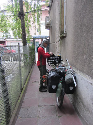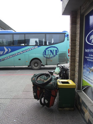これから東欧を走るという責自さん。逆にオイラはこれから東欧を出る。ということで、反対方向に走り始めるオイラたち・・・っていや、オイラは、ここからまたバスワープ。とりあえず、バスターミナルまで走って、そこからバスへ乗り込んだ。