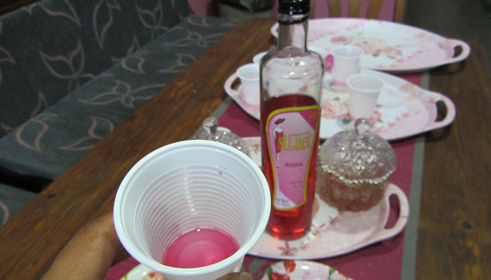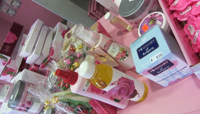 町はそんなにバラ、バラしてなく、ちょっと拍子抜け。と、一軒ローズハウスと書かれた店があったので入ってみた。すると、この店の中は、すべてバラ世界。ピンクに包まれた空間となっていた。とりあえず、バラのお酒(リキュール?)なるものを試飲させてもらう。バラのいい香りがした。何も買わなかったんだけど、めっちゃ親切にしてくれたおばちゃんたち。ありがとうございました。