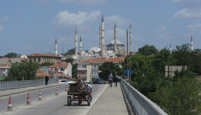 で、しばらく走って、国境近くの町、エディルネに到着。今日はここで泊まることに。この街にはトルコで一番デカいと言われているジャーミーがある。ということで、久々のトルコの町、まずはジャーミーから散策。