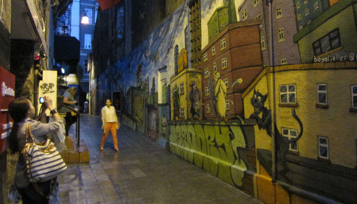 さて、伊藤くんと別れた後、料理人よしさんの案内で、イスタンブール巡り。スークを巡ってカラスミを試食したり、ローカルなジャーミーに入ってみたり、イスタンブールの街を一望できるテラスで水タバコを吸ってみたり、ガラタ橋で夕焼けを見たり、壁の落書きアートを見に行ったりと盛りだくさん。