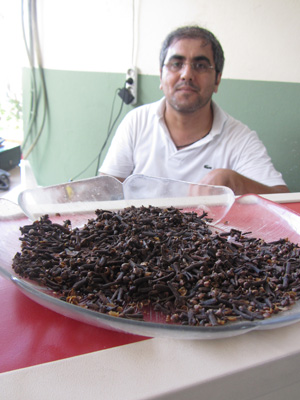 さて、朝飯を食べに宿の前にある食堂に入ったら会計のおじちゃんのテーブルに、クローブが皿に盛られて置いてあった。「なんで、こんなにクローブが置いてあるんですか?」と聞いてみたところ、「食後にこれを噛めば、口の中を消臭できるし、スッキリするのさ」と、おじちゃん。なるほど、クローブを料理に入れるだけではなく、こういう使い方もあるんだな。ちなみに、クローブは歯痛の時に使うと、歯痛を和らげる効果もある。