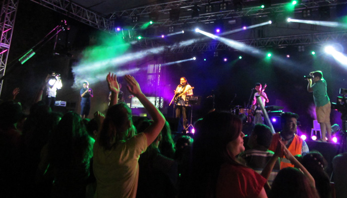 さてさて、今日はお待ちかねのスプーンダンスパフォーマンスが披露される日。夜になってすぐにフェスティバル会場へ行ったのだが、まずは、素人バンド大会みたいなのが開催されていて、ハードロックなバンドのお兄ちゃんたちが、街のお偉いさんからトロフィーを受け取っていた。いやぁ、素人丸出しの若いお兄ちゃん達によるハードロックな演奏・・・懐かしいなぁ・・・オイラにもかつてはこんな日々が・・・