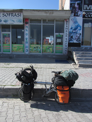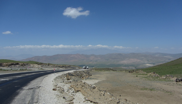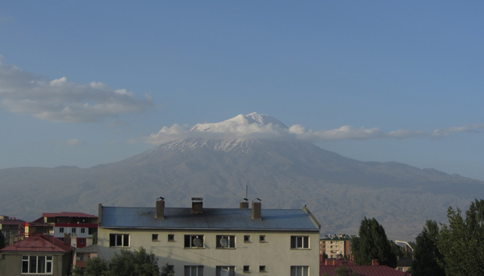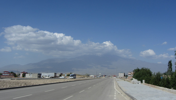 さて、しばらく走っていたら、目の前に、ドーンと美しい山が見えてきた。アララト山だ。ノアの箱舟が大洪水の後辿り着いたとされる聖なる山。もともとはお隣アルメニアの領土だったのだが、今はトルコ領となっている。とりあえず、今日は、アララト山のふもとのDogubayazitまで走り、ここで宿にチェックイン。