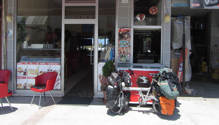 朝、リゼの町をウロウロして、ようやく一軒だけ、ちゃんとした飯がそれなりの値段で食えそうな店を発見。ここで朝飯をすませ、出発。