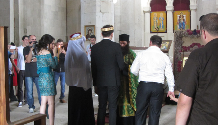 さて、今日は、メディコおばちゃんに、ヒンカリの作り方を教えてもらった後、街散策へ。ココには有名な教会があるというので、行ってみることに。クタイシの町を一望できる小高い丘の上にあるパクラティ教会。ここでは、結婚式が行われていた。