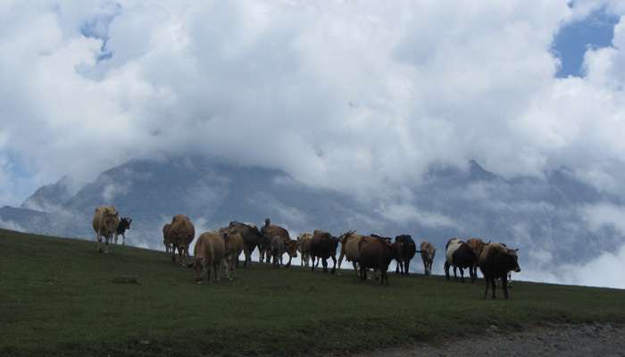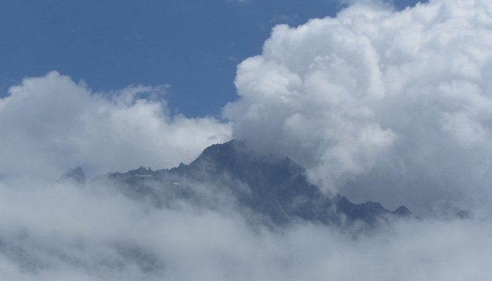 雲があるのも、趣があっていいのだが、それも程度による。今日の雲はあまりにも多すぎて、周囲にある山々を全部包み隠しちゃっているのだ。おかげで、名峰カズベキ山が、まったく見えない。