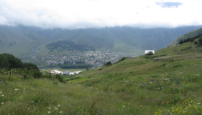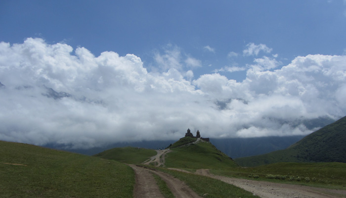 とりあえず、カズベキに来たら、ココに登っておけと言われている、裏山の教会のある小高い丘まで、トレッキング気分で登ってみた。