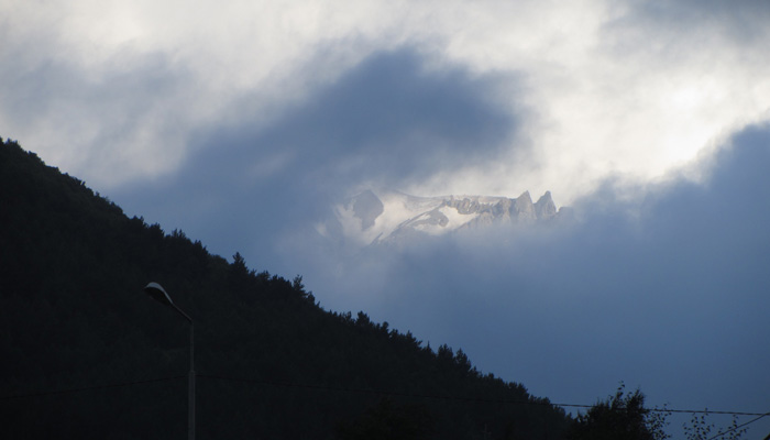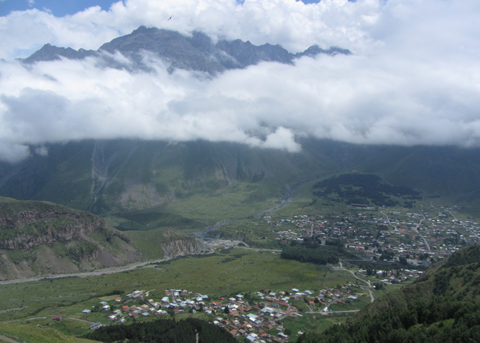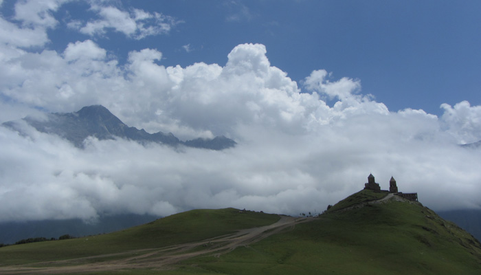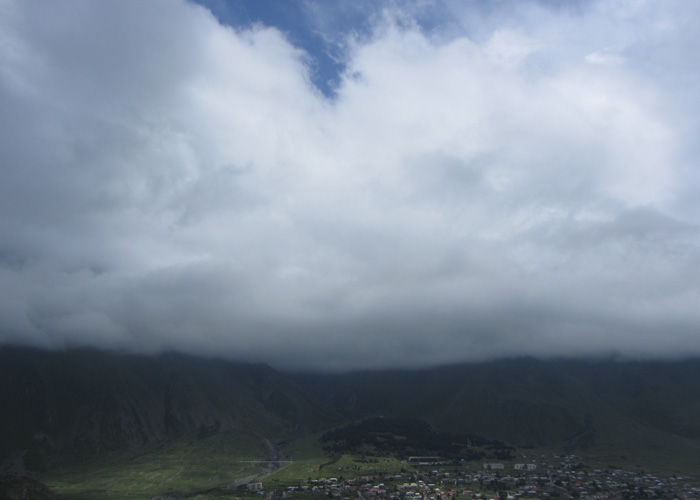 ということで、まぁ、一応、オイラもカズベキを満喫すべく、今日はカズベキに停滞して、絶景を堪能することにしたのですが・・・空には雲がモクモクと立ち込めていて、周囲の山がほとんど隠れちゃっているじゃないですか。