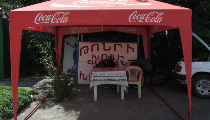 エレバンにはリタの家という安宿があることは聞いていたのだが、そこにはシャワーがないらしくて。暑い中汗をダラダラかいて走ってきたチャリダーとしては、シャワーは必須。ということで、昨日、アルメニア走りの途中で出会ったユダヤ人のチャリダーおススメの宿にチェックイン。ふ~、シャワーがめっちゃ気持ちよかったよ。