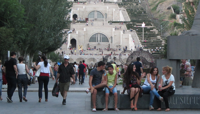 そして、今日はそのままアルメニアの首都エレバンに到着。エレバンの町は盆地みたいなところにできている。なので、町を入る手前から一気に坂を下ることになり、せっかく貯め込んだ位置エネルギーを無駄遣いすることになり、悲しい気分になったのだが・・・まぁ、今回貯めこんだ位置エネルギーは、タクシーのおかげだったからな。
