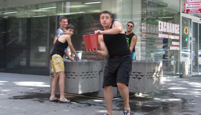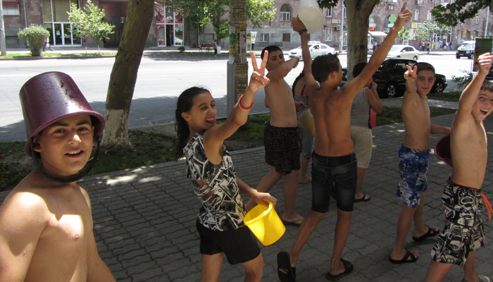 さすがに、厳かな雰囲気漂う虐殺記念館では、水をかけられるようなことはなかったが、ゲガルド修道院では、水をかけられまくり。