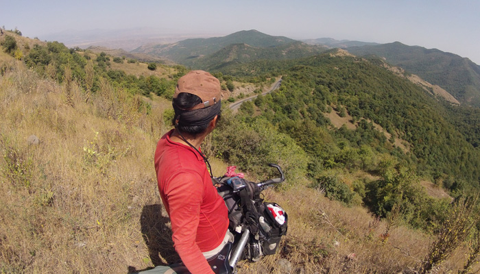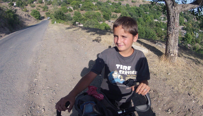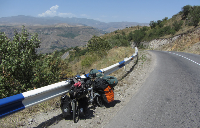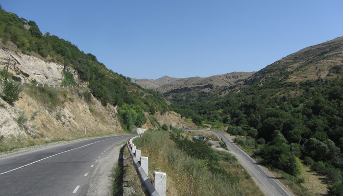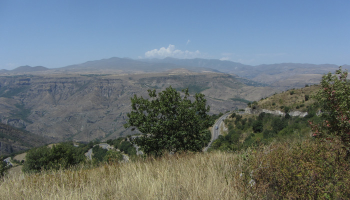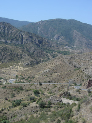 そんなこともありつつ、下った道の後は、やはりというかなんというか、強烈な登りが待っていた。とにかく、アップダウンばかりが続くアルメニア道。ああ、ツライ。ホントにツライ。ここは、ワープした方がよかったかも・・・まぁ、途中ナゴルノカラバフの領土にちょいと入れたりした(境界線は特にないのでGPSで確認)ので、楽しんだといえば、楽しめたりもしたのだが。