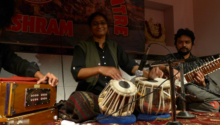 そして、今回のライブでの一番の収穫は、ケシャヴ師匠の弟子の一人という女性奏者によるタブラソロだった。この時のタブラソロの演奏の流れを見ることで、今までやってきたことが、つながった。なるほど、あの時ケシャヴ師匠から習ったフレーズは、こういう風に応用して使うものなのか、とか。そして、ティラキタタカパターンを綺麗に叩くこの女性のおかげで、高速パターンのニュアンスをやっと掴めた気がした。さらに、今からこれをやります、みたいなのを口で説明してくれ、フレーズも歌った後に叩き始めてくれたので、オイラにとっては勉強になりまくり。