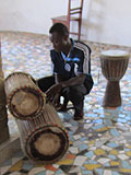 颯爽と現れたのは、ジプソン。第二回ジャンベ修行の師匠となる青年だ。早速ジャンベを2つ取り出してきて、レッスンが始まった。まず、リズムの始めに、キメフレーズがあり、一つのリズムを叩いた後、エンディングもキメで終わる。この一連の流れが分かりやすい。ジギのレッスンが、全然体系だってなくて、ひたすら無秩序にいろんなリズムを詰め込んでくれたのに対して、ジプソンのレッスンは、非常に体系立っていて、分かりやすい。